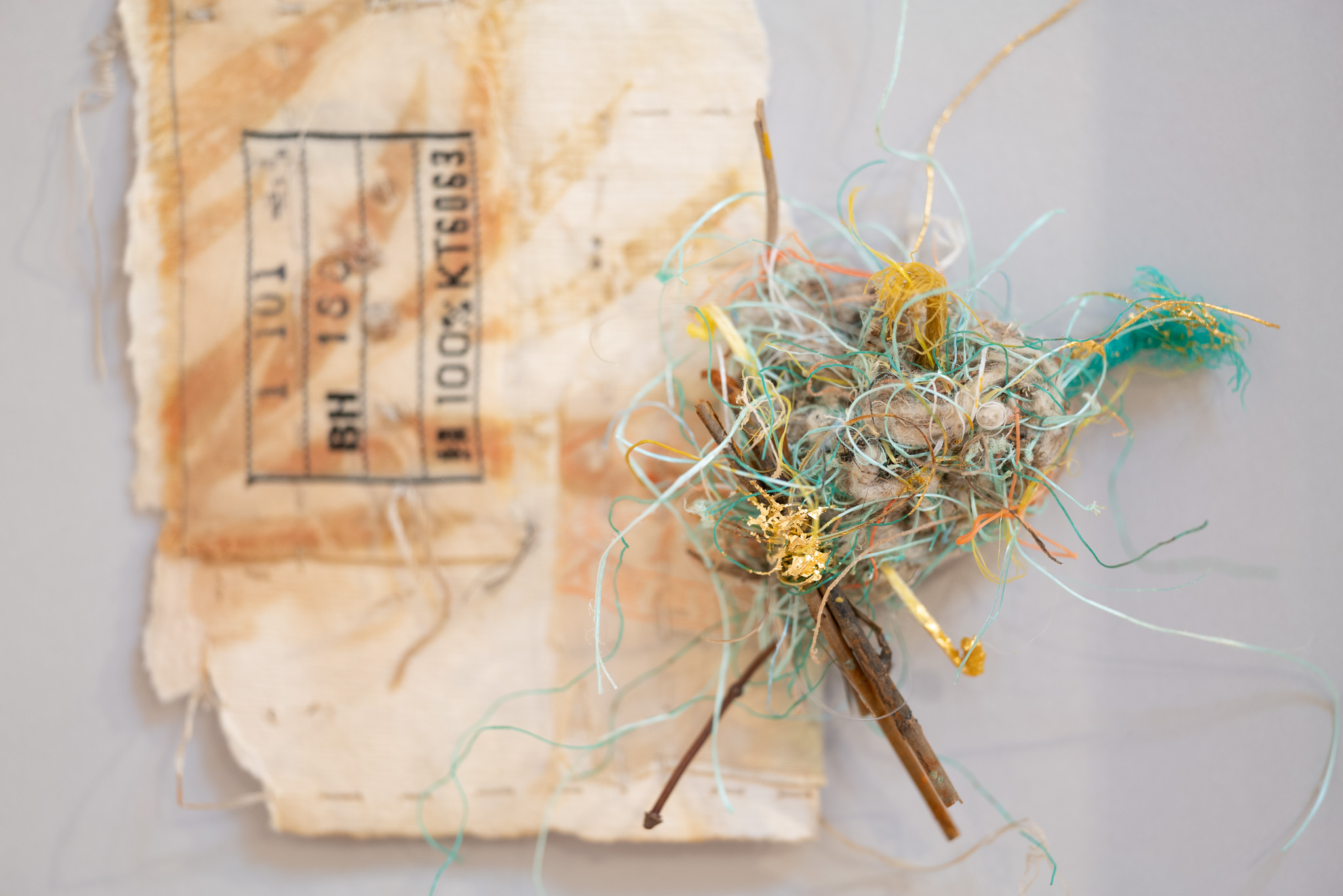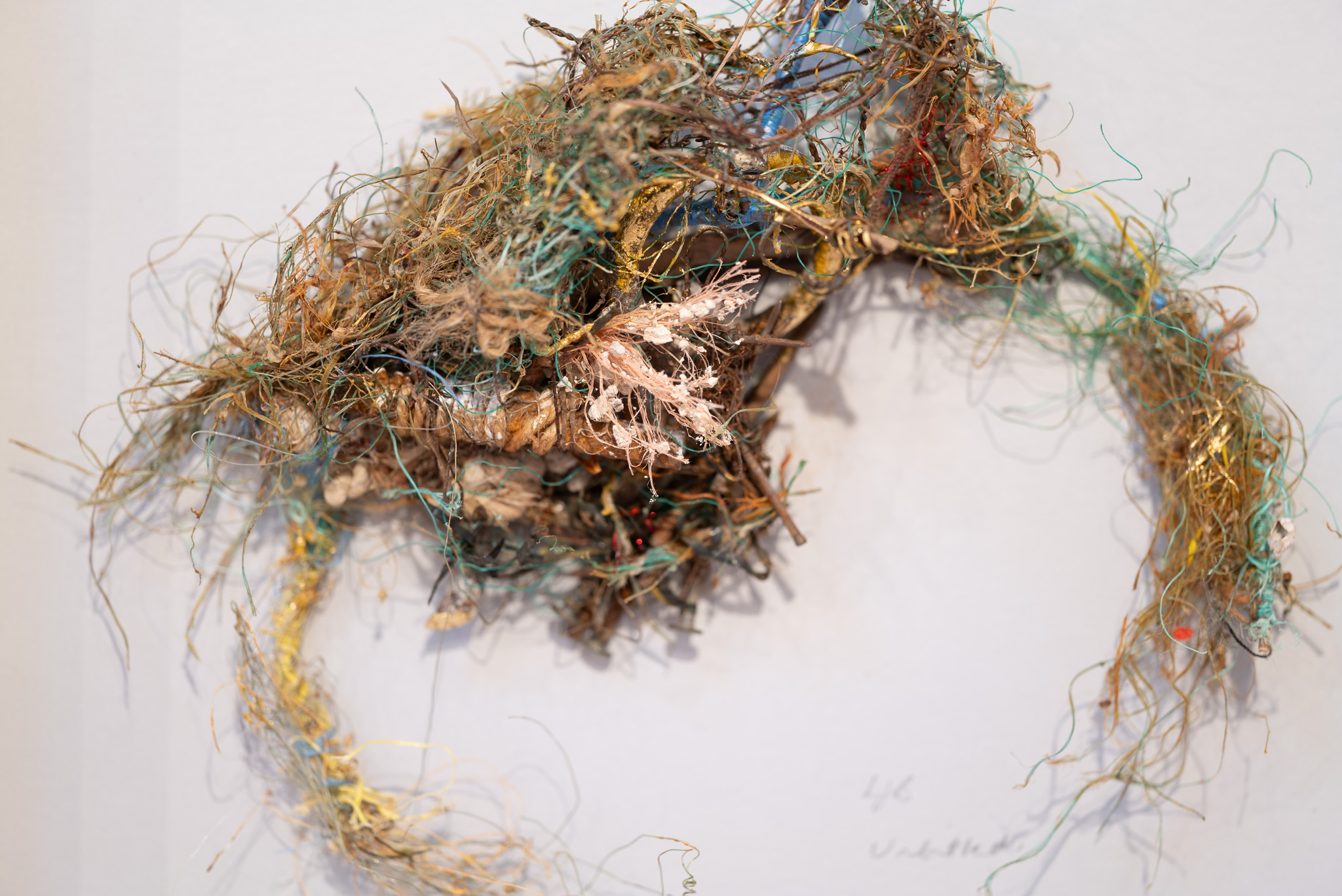 Moving my Freight of Memory work on I am considering waste as a plentiful resource. We should now be benefitting from its careful harvesting and reprocessing thus embracing a circular economy approach. I take discarded waste and repurpose it into something more appealing. The repetitive cutting, threading and repurposing of these materials creates a calming rhythm in me. It soothes the anger triggered when I am regularly confronted by plastic waste in our natural and urban environment.